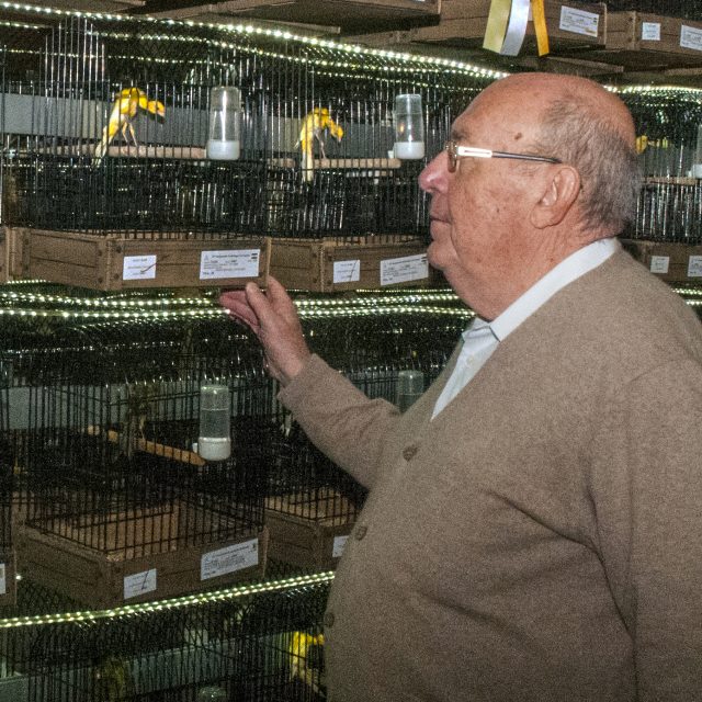 Mi nombre es Jesús Jiménez Cossío (CN 383), criador de canarios de raza de postura desde hace más de 50 años. Durante mi larga experiencia como aficionado a la canaricultura he sido criador de bellas razas de canarios como el Frisé Parisien y el Gibber Italicus si bien los mayores esfuerzos y la mayor dedicación se la he prestado en mi aviario de Alcalá de Guadaíra (Sevilla) a una de las más destacadas razas de canarios de postura rizada, el Giboso Español, del que soy considerado creador. Desde su creación y reconocimiento he criado bellos ejemplares de esta raza y he cosechado con ellos numerosos premios en campeonatos nacionales e internacionales, y en los Campeonatos Mundiales COM, siendo el primer campeón mundial de Giboso Español en el año 1985.